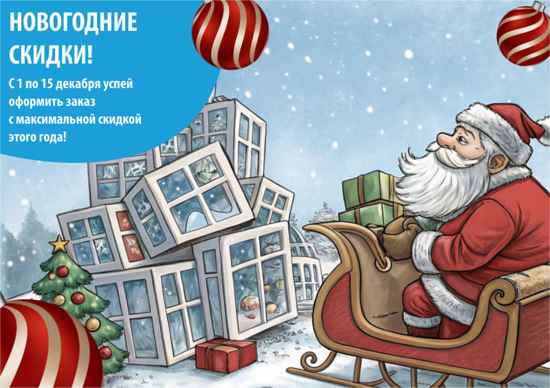 С 1 по 15 декабря максимальные скидки при оформлении заказа с монтажом!