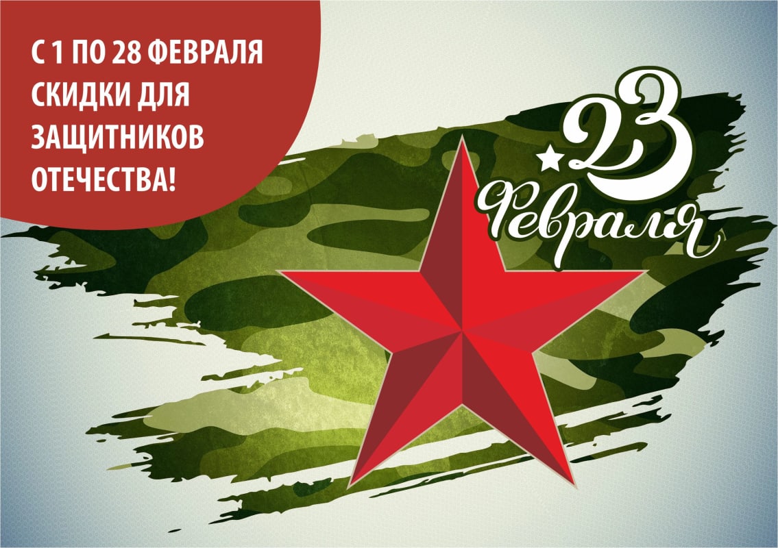 С 1 по 28 февраля скидки для защитников Отечества!